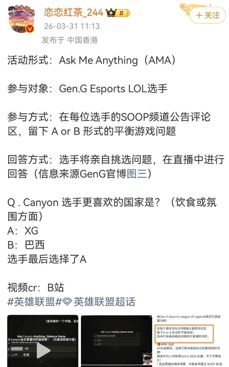 GEN场外再爆雷,遭中国玩家炮轰而除了Ruler逃税避税的事件外,GEN场外也再度爆雷,在近期的GEN战队Canyon直播问答环节中,官方给选手发布了明显带有不正当表述的问题,来让选手回答,问题是问Canyon:更喜欢哪个国家(从食物与氛围来说)。