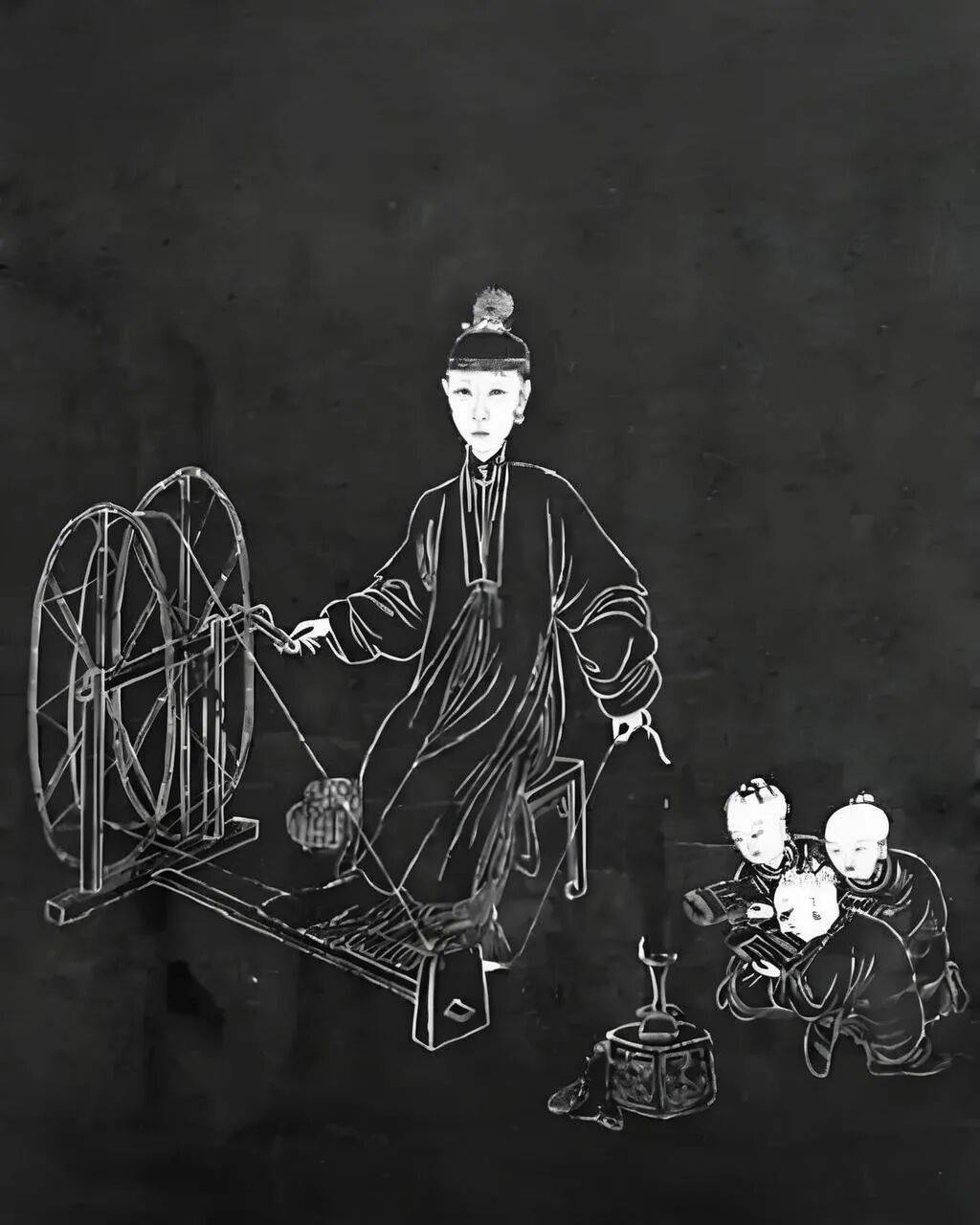 ▲清宫廷刻「夜纺授经图」拓卷