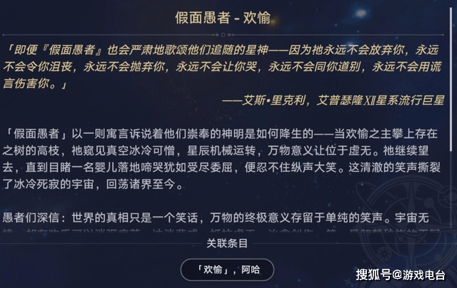 说起来,这也不是崩铁第一次玩Rickroll这个经典梗了。早在游戏初期,介绍欢愉星神“阿哈”时,制作组就玩过一次。